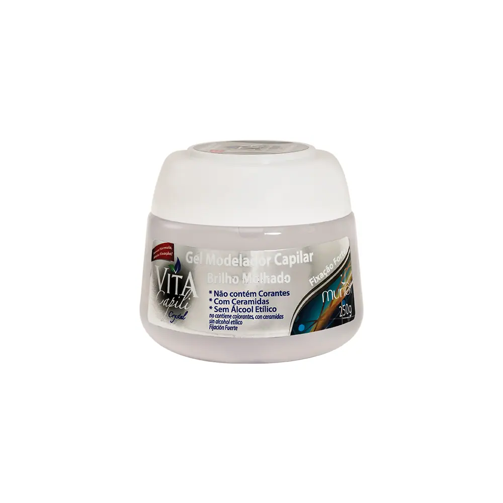 O Gel VITA CAPILI permite modelar seus cabelos ou finalizar seu penteado criando efeitos diferentes e texturas de acordo com seu estilo, proporciona uma ação duradoura, sua fixação Extra Forte, mantém a modelagem perfeita todo o dia. Possui formulação não gordurosa, sem álcool e com pH neutro que não agride, não resseca e não deixa resíduos nos cabelos.